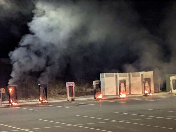 周一,波士顿郊外一家购物中心的七个特斯拉充电站被人蓄意纵火。