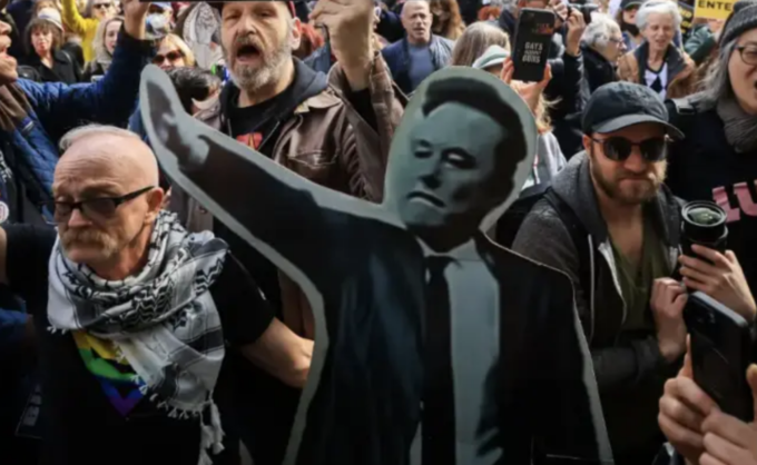 针对马斯克的抗议不仅发生在美国,还蔓延至欧洲。在英国,一场海报运动将马斯克在就职集会上的敬礼姿势与法西斯主义联系起来;在德国,马斯克被讽刺为“Napo-Elon”。
