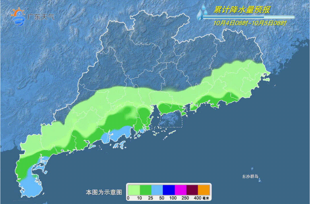 4日夜间-5日夜间,受“麦德姆”环流影响,珠江口以西的沿海市县有大雨到暴雨局部大暴雨,其余大部分市县多云,有(雷)阵雨。最高气温:粤西市县28~30℃,其余大部分市县30~33℃。