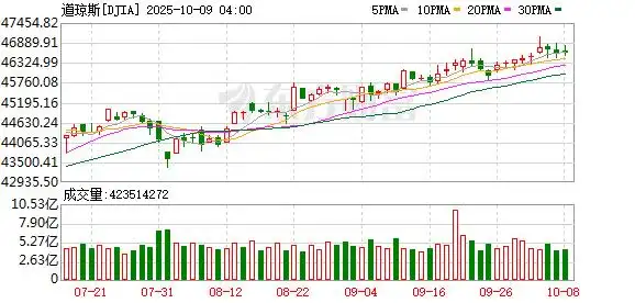 美股市场:美股三大指数10月08日收盘涨跌不一,纳指与标普再创历史新高。截至收盘,道琼斯工业平均指数比前一交易日下跌1.2点,收于46601.78点,跌幅为-0.0%;标准普尔500种股票指数上涨39.13点,收于6753.72点,涨幅为0.58%;纳斯达克综合指数上涨255.02点,收于23043.38点,涨幅为1.12%。
