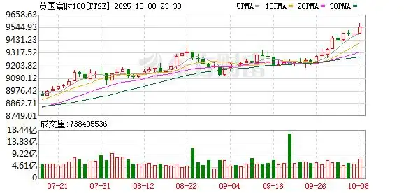 欧股市场:欧洲三大股指10月08日全线上涨。英国伦敦股市《金融时报》100种股票平均价格指数报收于9548.87点,较前一交易日上涨65.29点,涨幅为0.69%;法国巴黎股市CAC40指数报收于8060.13点,较前一交易日上涨85.28点,涨幅为1.07%;德国法兰克福股市DAX指数报收于24597.13点,较前一交易日上涨211.35点,涨幅为0.87%。