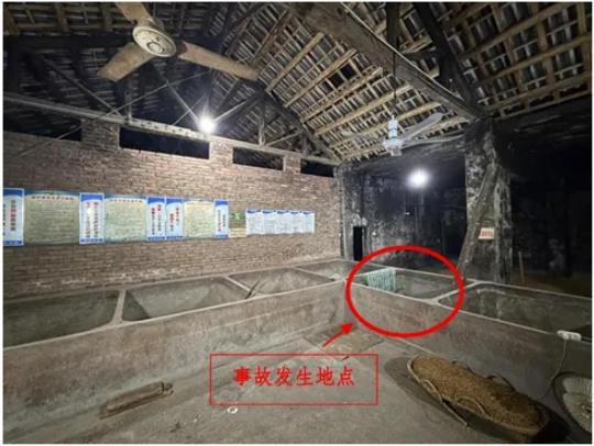 朝荣酒厂成立于2018年10月,是个体工商户,共有4名员工。这家酒厂占地面积约100平方米,主要生产散装白酒。事故发生时,酒厂刚从7月10日的停产中恢复生产,并于9月22日复工。9月26日凌晨,酒厂组织员工进行发酵池清扫等作业。车间内共有6个发酵池,其中发生事故的发酵池尺寸为长宽深各1.6米,池顶距地面0.6米,事故发生时池底未放入生产原料且无积水。