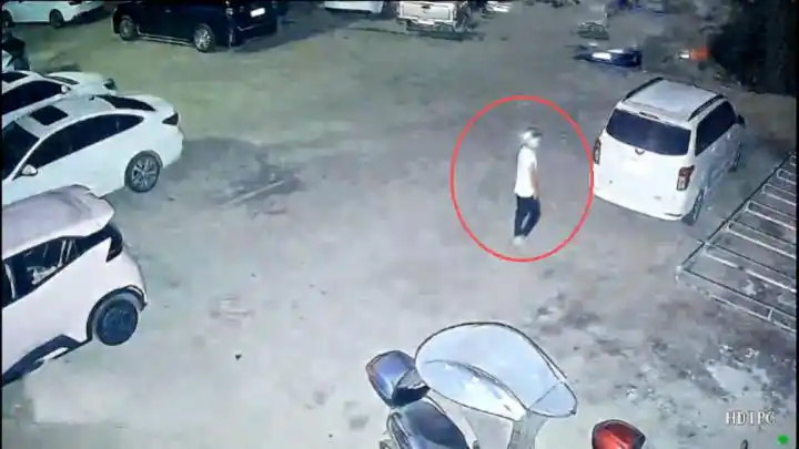 网友发布视频中犯罪嫌疑人来到事发的珠宝店指认现场。(来源/网络截图)