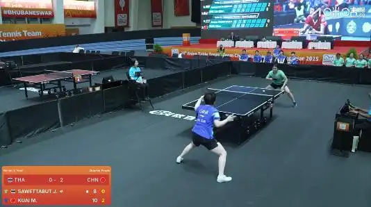 第三场比赛由蒯曼对阵吉尼帕,蒯曼也毫无悬念地11比6、11比7、11比8连胜三局赢下对手,中国队也以3比0的比分淘汰了泰国队,晋级本届团体亚锦赛的女团四强。