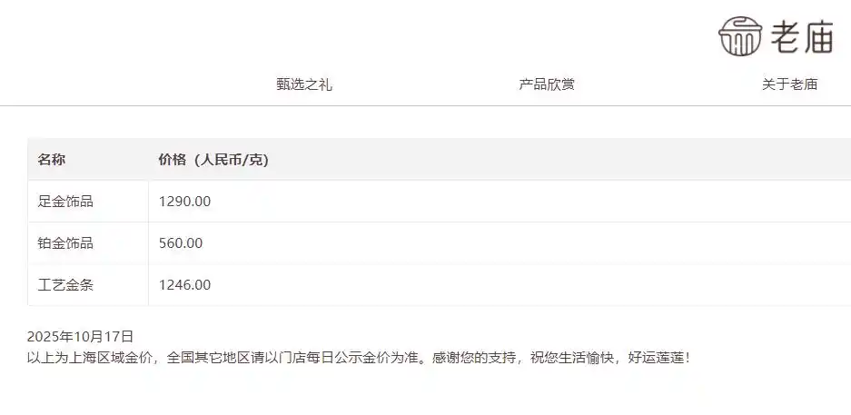 受此因素作用,17日,国内金饰价格不断走高,中新经纬查询到,有品牌金饰每克价格涨到1290元。其中,老庙黄金金饰每克售价为1290元,当天上涨42元;周生生为1281元每克,单日增加36元;老凤祥为1280元每克,当天提升35元。