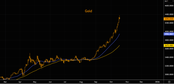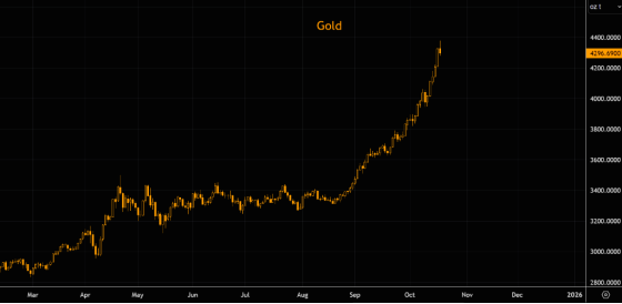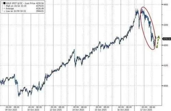 然而,即使周五暴跌,金价本周仍上涨近5%,为连续第10周上涨,也是自5月以来的最佳单周涨幅,并在测试4200美元后反弹走高。