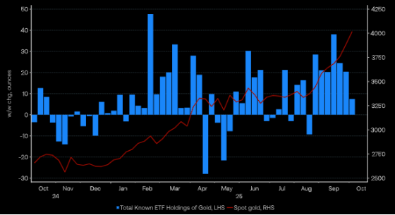 不过,根据美银的数据,过去10周黄金ETF净流入达342亿美元,创历史最高纪录。