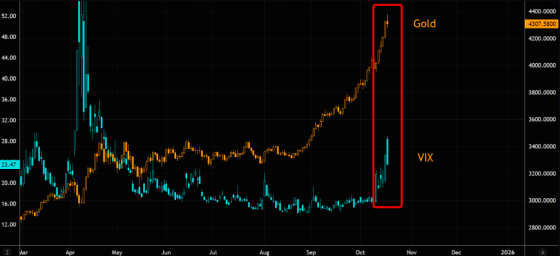 VIX指数尽管近期大幅上扬,但日内出现巨幅回撤,削弱了黄金作为"恐慌对冲"工具的短期吸引力。
