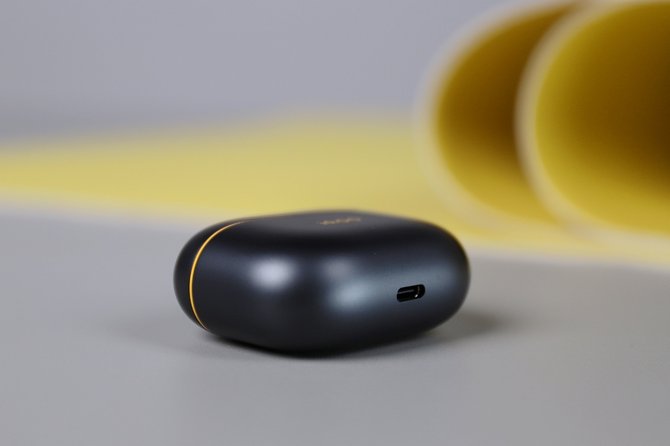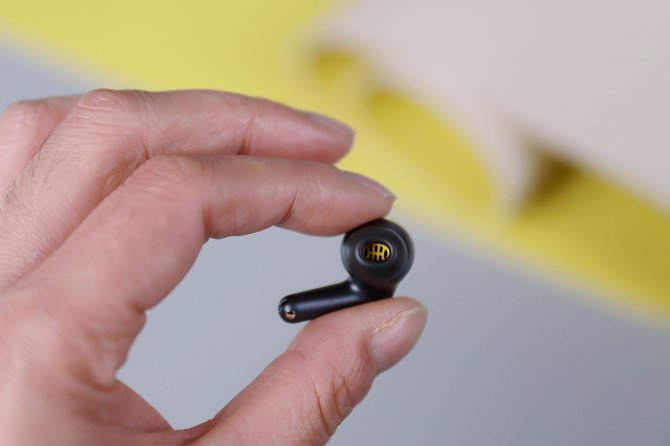 除了核心功能,TWS 5 的细节设计也让通勤体验更舒适。单耳机重量约 4.8g,再加上优化后的水滴小耳柄(宽度缩窄 0.57mm,长度缩短 0.08mm),戴久了也不会有耳屏压迫感。此外,外观上,除了这款黑黄撞色款,还有一款是极简风格的电光白款,比较百搭。