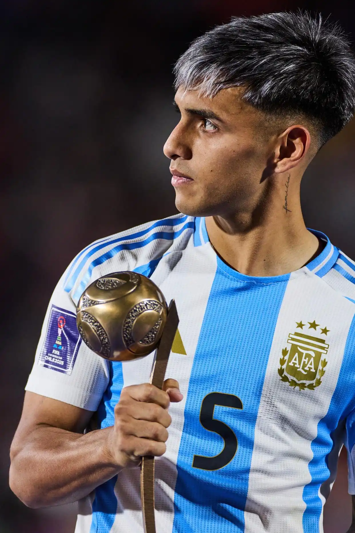 ↑ 阿根廷队球员普雷斯蒂安尼在颁奖典礼上。 新华社记者 孟鼎博 摄