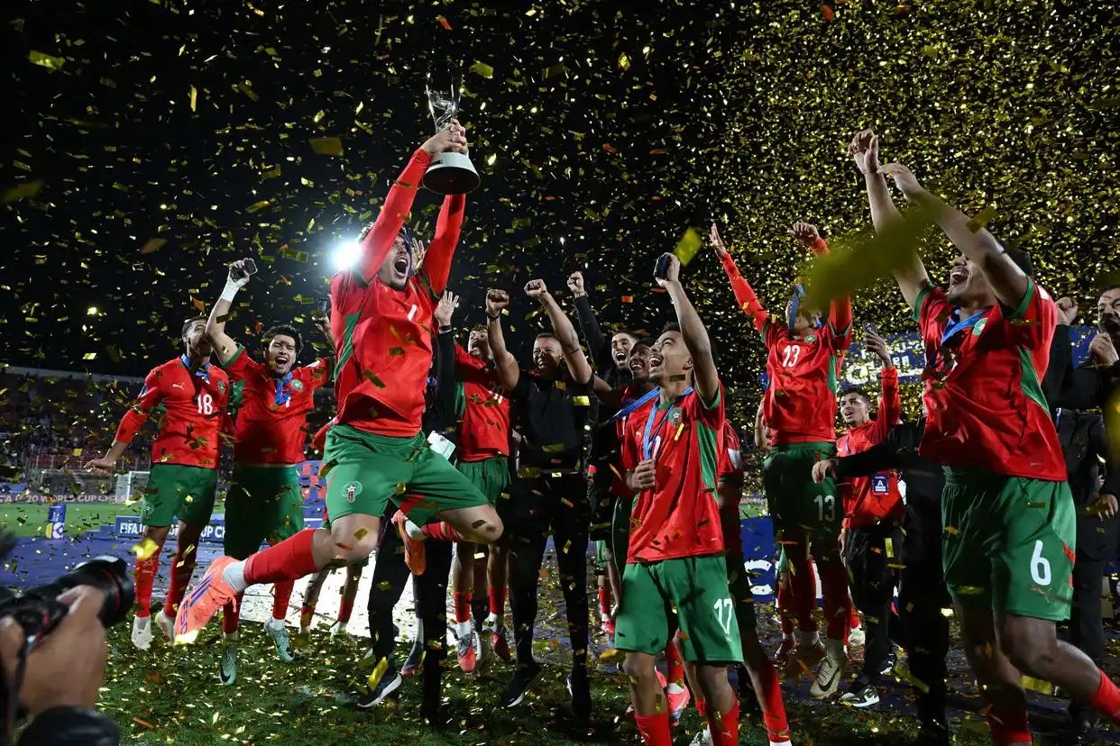 当地时间10月19日,在智利圣地亚哥进行的2025国际足联U20男足世界杯决赛中,摩洛哥队2比0战胜阿根廷队,获得冠军。
