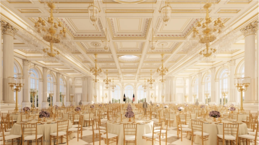 据悉,该宴会厅能够承办约650人参与的活动,将使白宫主楼及东西翼的建筑基底面积扩大近一倍。相关资金由特朗普和其他未公布身份的捐赠者承担。