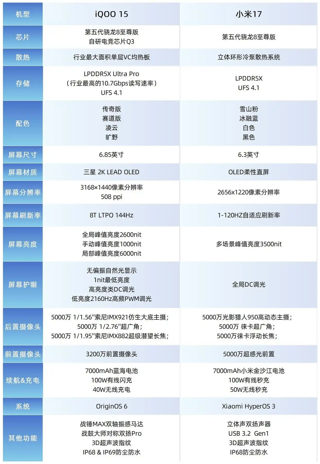总的来说,iQOO 15和小米17作为搭载第五代骁龙8至尊版的旗舰机型,核心性能都足够强悍,日常使用、多任务处理都能轻松应对,绝对称得上是值得入手的好选择。