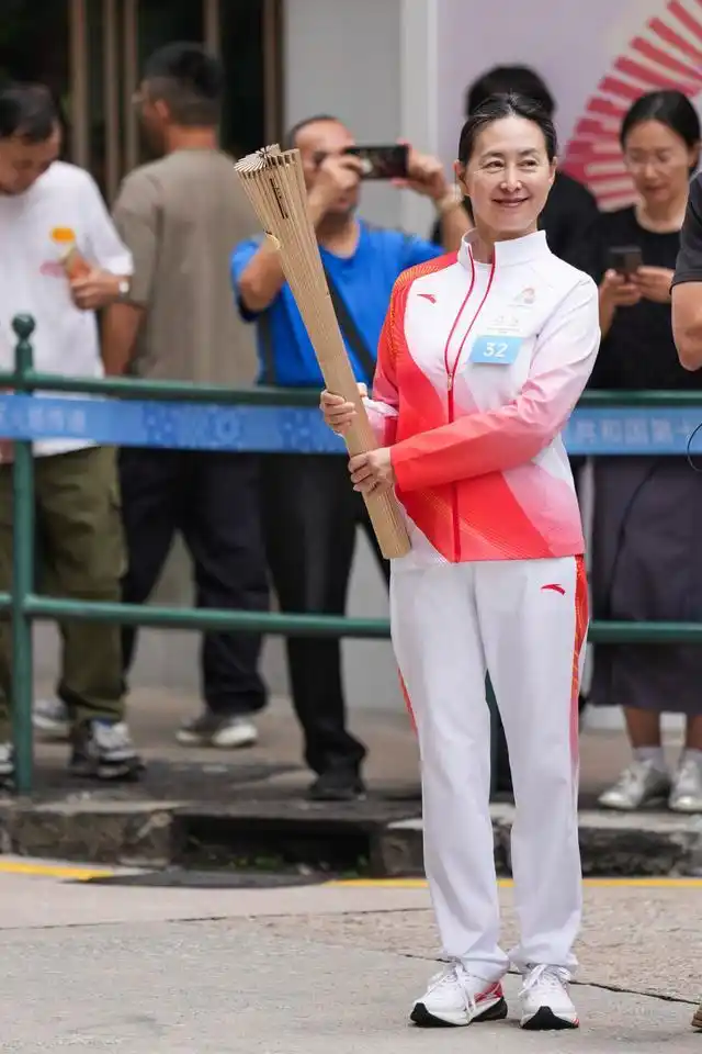 ↑ 火炬手颜宁在传递活动中。新华社记者 吴鲁 摄
