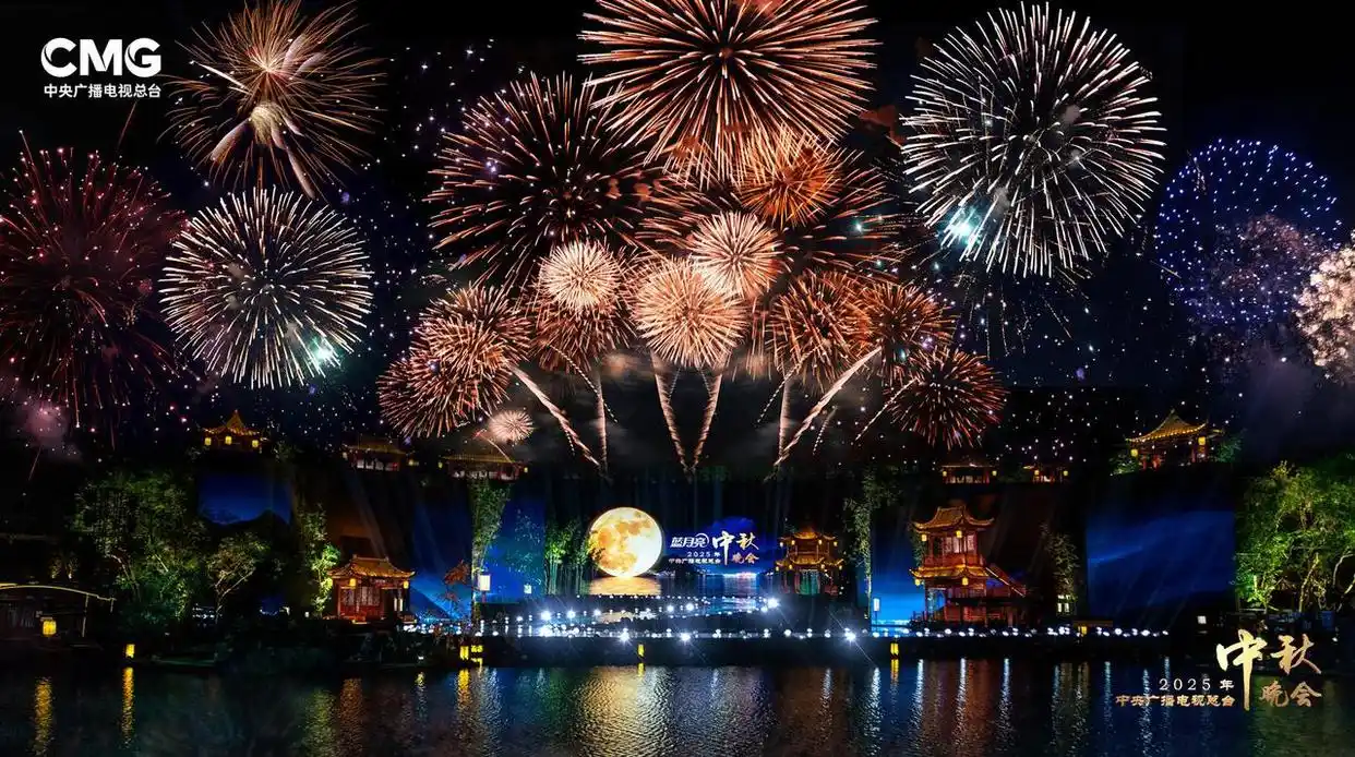 2025年总台中秋晚会主舞台选址在德阳玄珠湖,依托实景山水,以蜀道为引、明月为核,营造出“月从蜀道升,人向镜中圆”的深远意境。