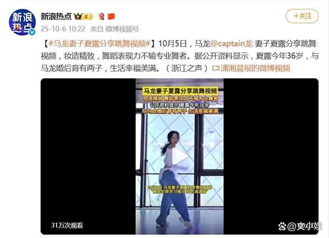今年十月,乒乓球冠军马龙的妻子夏露因一段舞蹈视频在网络上引起广泛关注。10月5日,她在社交平台上发布了一段个人舞蹈片段,迅速吸引了大量网友的目光。视频中,她妆容精致、动作流畅,展现出扎实的舞蹈功底和饱满的感染力,许多网友称赞她的表现堪比专业舞者。