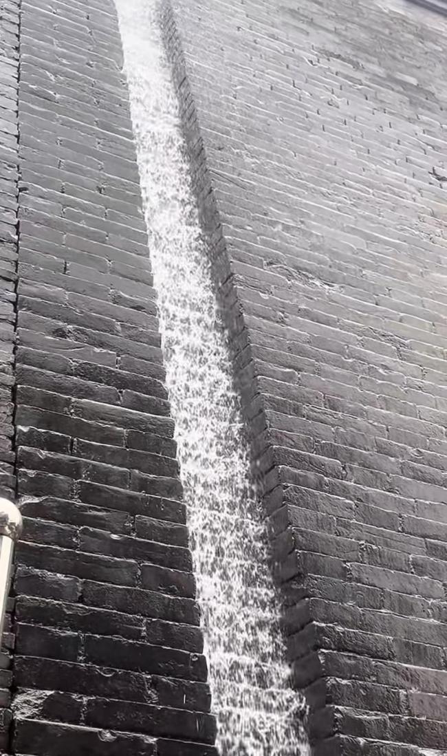 近日,游客@逆夏在西安城墙朱雀门拍摄了一段视频,雨水沿着城墙流水槽像瀑布一样落下,引起了不少关注。大爷建议他拍摄这段视频,并表示这样的视频容易火。
