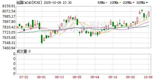 欧股市场:欧洲三大股指10月08日全线上涨。英国伦敦股市《金融时报》100种股票平均价格指数报收于9548.87点,较前一交易日上涨65.29点,涨幅为0.69%;法国巴黎股市CAC40指数报收于8060.13点,较前一交易日上涨85.28点,涨幅为1.07%;德国法兰克福股市DAX指数报收于24597.13点,较前一交易日上涨211.35点,涨幅为0.87%。