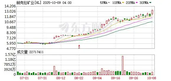 国际金价创历史新高,贵金属、金属原材料与采矿涨幅居前,世纪铝业涨超12%,美洲白银公司、赫克拉矿业涨超11%,南方铜业涨超4%。
