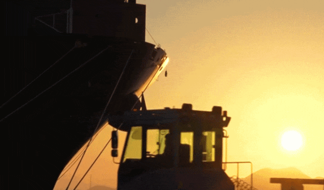 清晨的时候,阳光洒落下来,照到了宁波舟山港梅山港区的码头上,这个码头十分忙碌,那里有6台大型桥吊,在晨光里挥舞着巨臂,正给“中远海运白羊座”轮做装卸作业,这艘船长度是400米,载重20万吨,它是目前世界上最大的集装箱船中的一艘,该船的船长站在驾驶舱内,看着朝阳下的作业场景,脸上露出满意的神情。