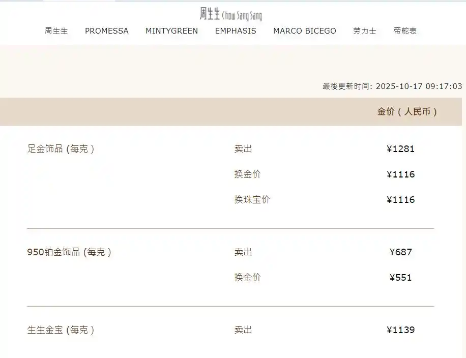 受此因素作用,17日,国内金饰价格不断走高,中新经纬查询到,有品牌金饰每克价格涨到1290元。其中,老庙黄金金饰每克售价为1290元,当天上涨42元;周生生为1281元每克,单日增加36元;老凤祥为1280元每克,当天提升35元。