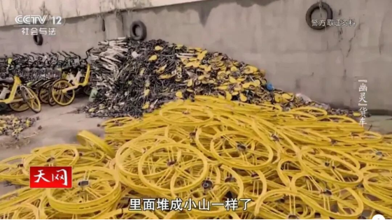 某公司单车项目负责人表示, 看 到堆成山的共享单车,很震惊,很气愤!本该供人使用的共享单车成了一堆废铁。