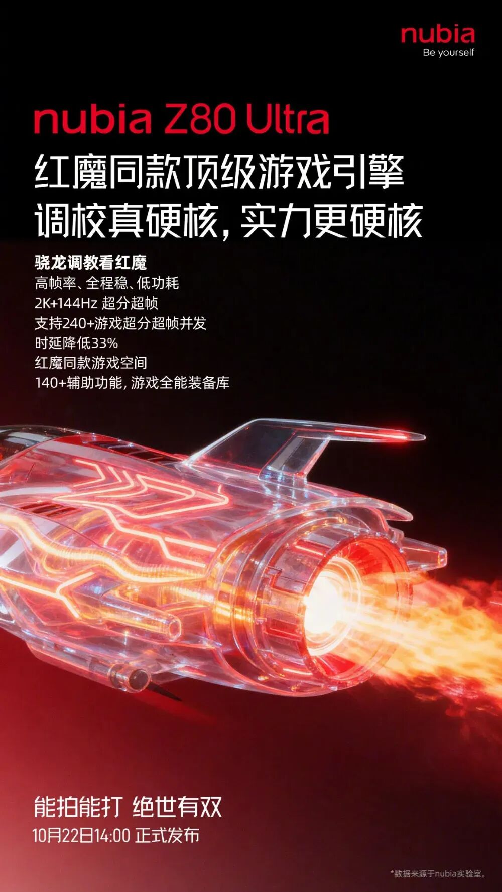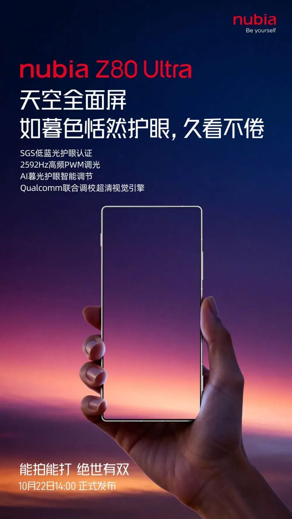 不久前,努比亚手机官方宣布,努比亚Z80 Ultra将于10月22日14:00正式发布,号称“能拍能打,绝世有双”。