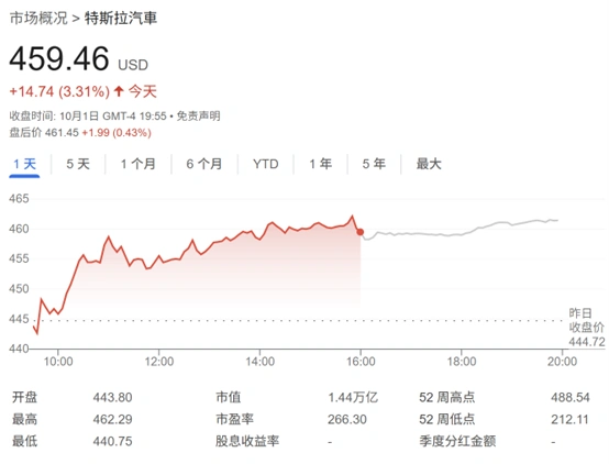 马斯克的财富与特斯拉密切相关,截至9月15日,他持有特斯拉超12.4%的股份。今年以来,特斯拉股价上涨了逾14%,周三收盘上涨3.3%,令马斯克的净资产增加了60多亿美元。