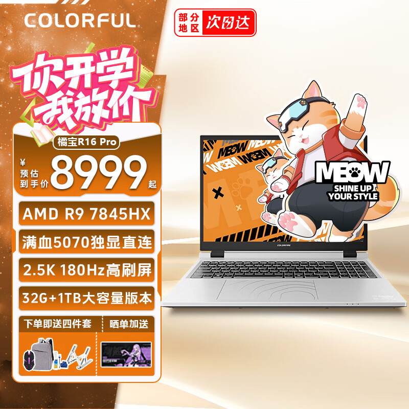 【品牌直营】COLORFIRE七彩虹橘宝【国家补贴20%】MEOWR16锐龙R9/4060/4070